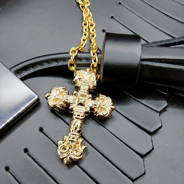 プレート クロス 十字架 王道 ブラッククローム ネックレス ピンクゴールド メンズ レディース ユニセックス ペンダント チェーン アクセサリー