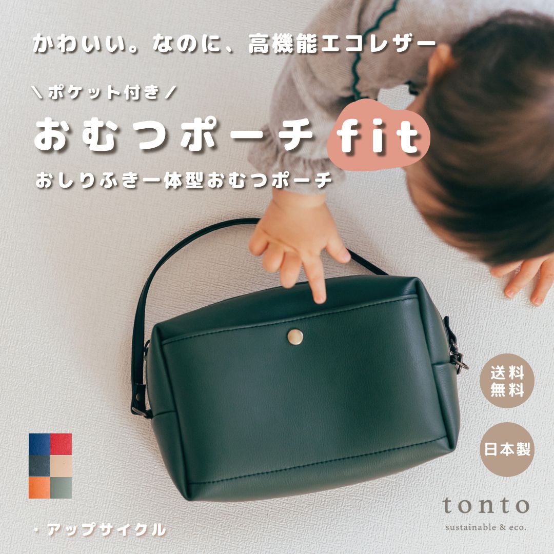 【アップサイクル ポケット付き おむつポーチ〈 fit 〉】おしりふきケース 一体型 マルチバック フェイクレザー