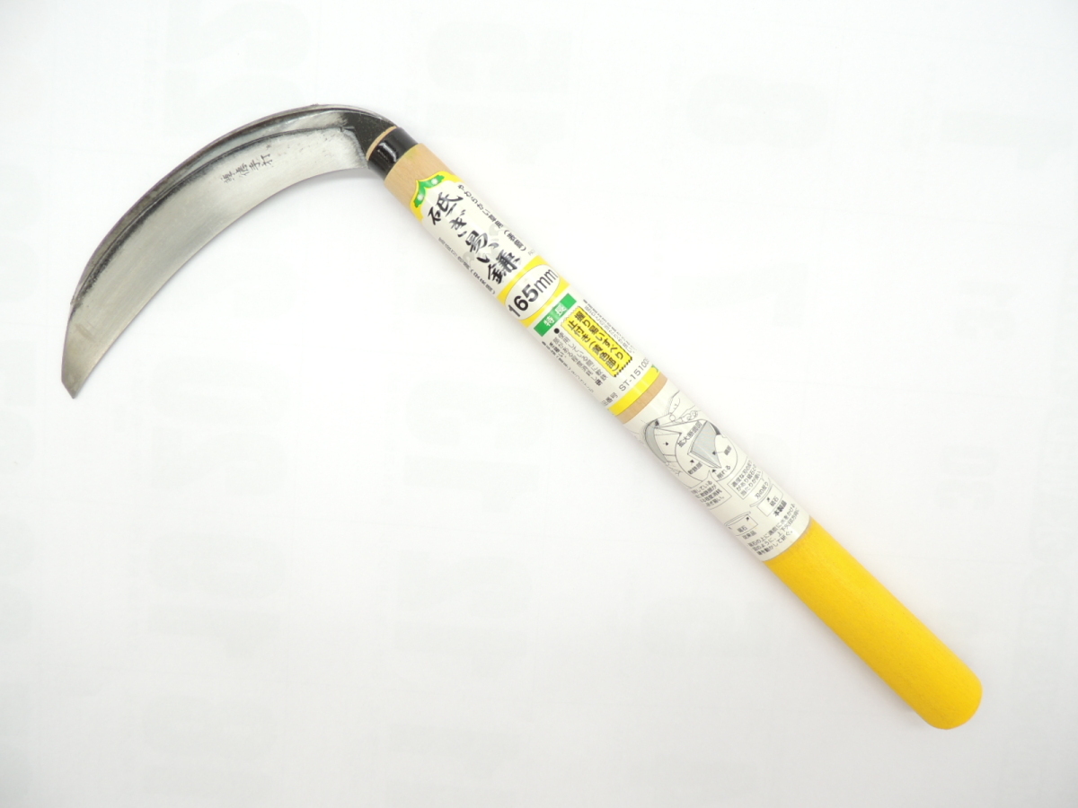 日本製 尊徳鎌本舗 165ミリ 新型柄 砥ぎ易い鎌 三日月鎌 手打 鋼付 裏研 安来鋼 新型柄 JAN 4975910130351