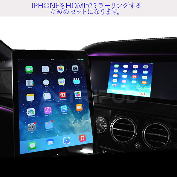 ※Lightningタイプに対応※接続する車両、カーナビ、AVインターフェースにHDMIの入力が 必ず必要になりますので注意して下さい。・本製品はApple純正AVアダプタを含む、組み合わせ商品になります 必要な複数の商品をつなぎ合わせていますので、バラバラで購入する必要がありません。・アプリにより一部作動しない場合があります。・本製品はあくまでも中継するための物で、操作には一切連動しません。・取り付け、 使用に関しては正しい知諜、 技術が必要です。 誤った配線や使用方法による車輌の破損。故障。事故等が発生しても 当店では一切責任を負いません。
