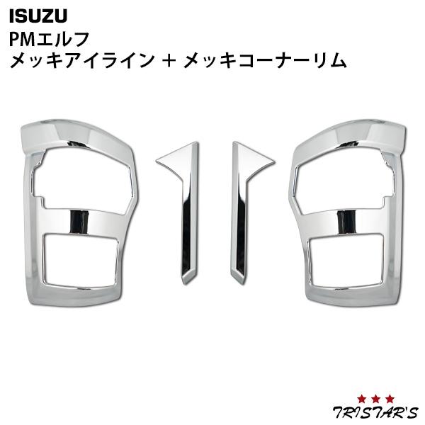 PMエルフ メッキ アイライン コーナーリム 4点セット 2t 超低 エルフ 標準 ワイド いすゞ パーツ