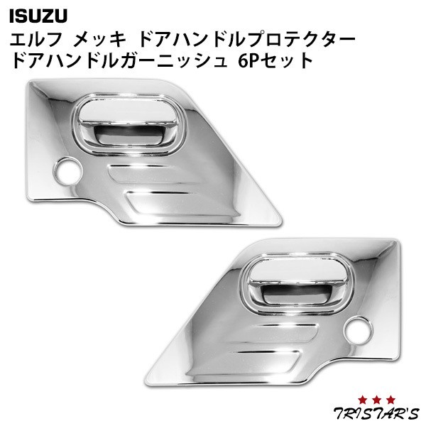 いすゞ NEWエルフ PMエルフ 07エルフ メッキ ドアハンドルプロテクター ドアハンドルガーニッシュ 6Pセット