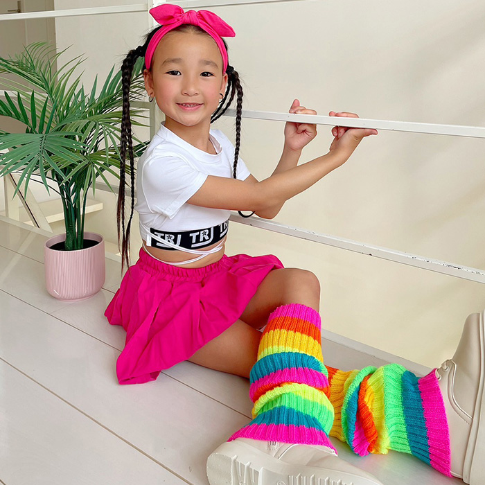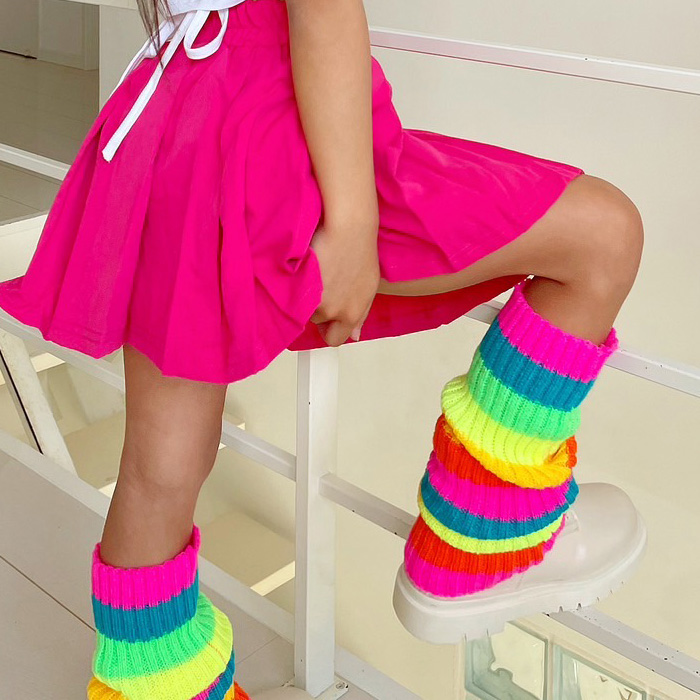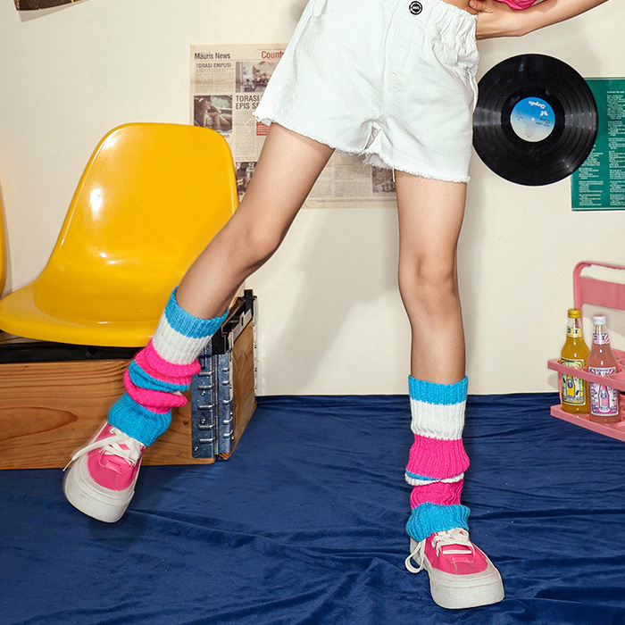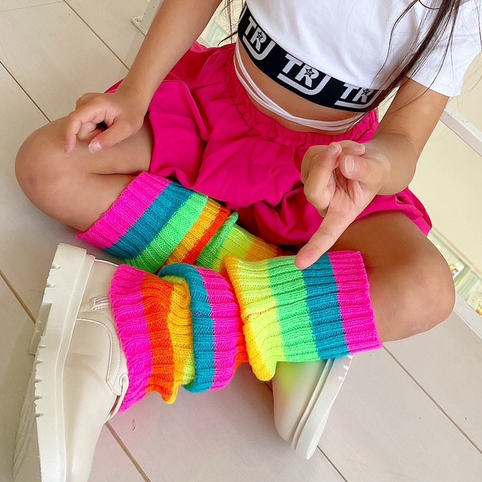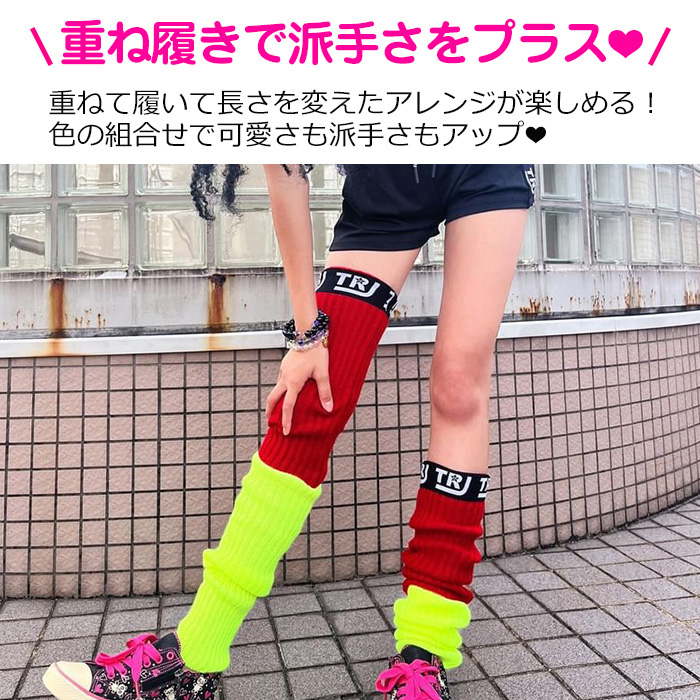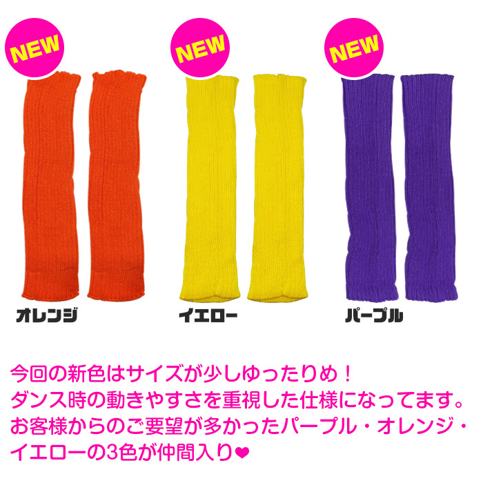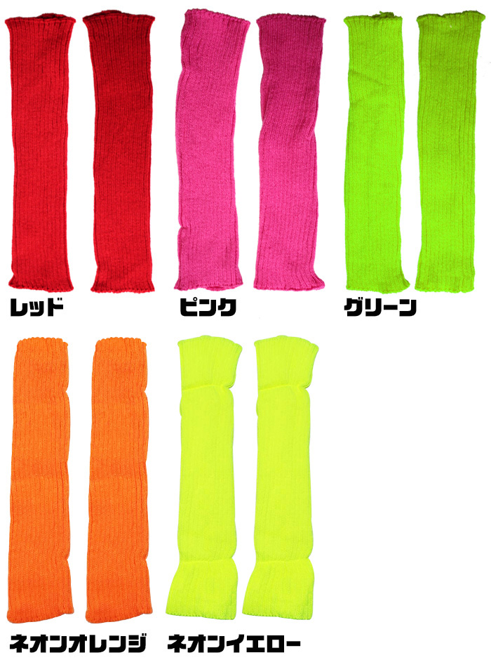 アクリル100%カラフルレッグウォーマー。フィットネスやダンス衣装にも!