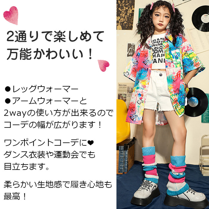 キッズダンス衣装 レッグウォーマー2足セット アームカバー レッグカバー 女の子 子供 フリーサイズ ヒップホップ ダンス 衣装 ルーズソックス ハイソックス