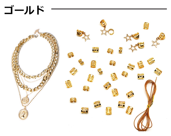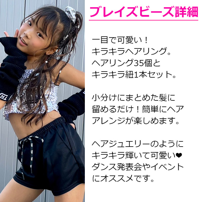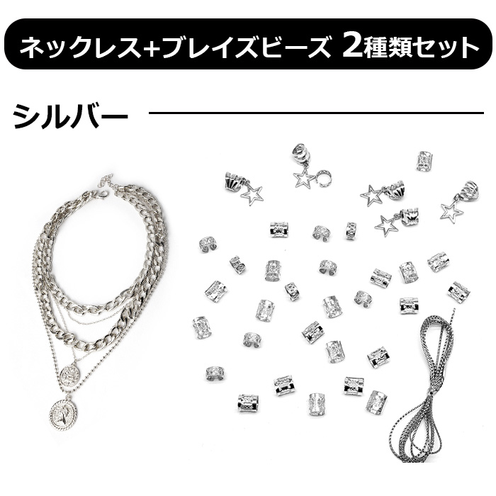 送料無料 ダンスコーデ 2種セット 5連ネックレス+ヘアリング36個セット ブレイズビーズ 女の子 キッズ 子供用 ゴールド シルバー ダンス衣装 ヒップホップ