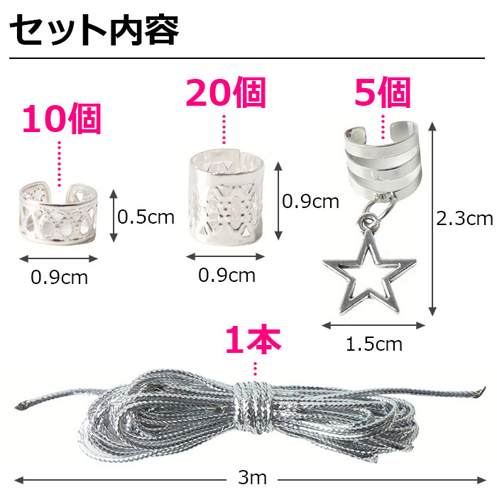 ・ヘアリング35個+紐(3m)1本