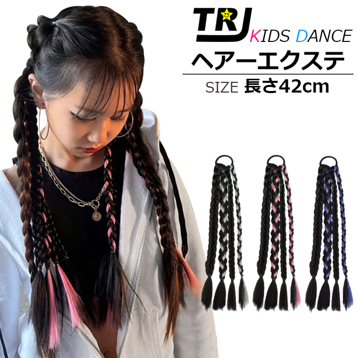 三つ編み 編み込み エクステ カラー ゴムタイプ 簡単 便利 ヘアーエクステンション ツインテール 女の子 子供 キッズ ガールズ ウイッグ 七五三