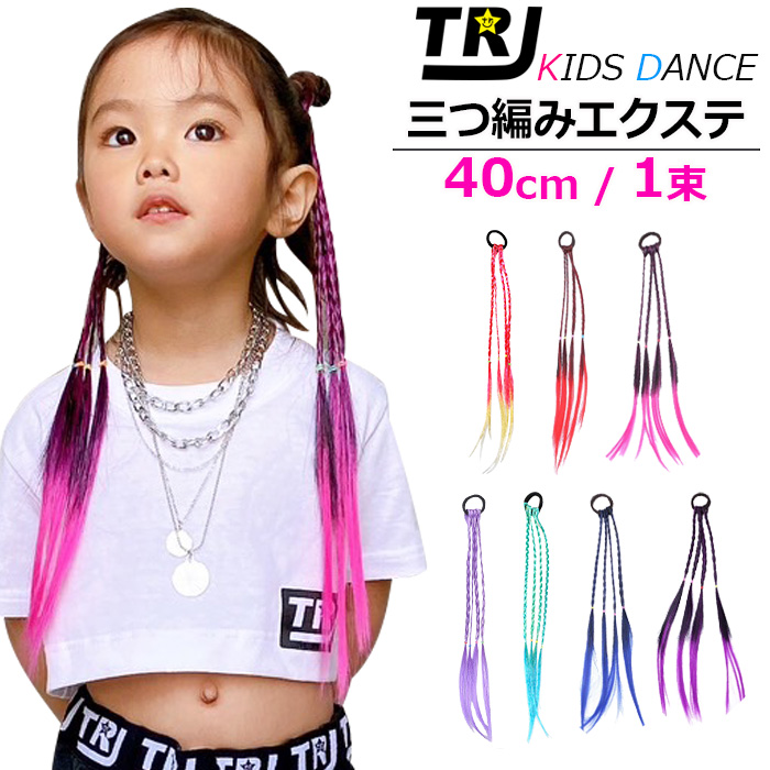 キッズダンス衣装 送料無料 三つ編み 編み込み エクステ 1束 カラーエクステ ゴムタイプ 簡単 便利 ヘアーエクステ ツインテール 女の子 子供 キッズ ガー