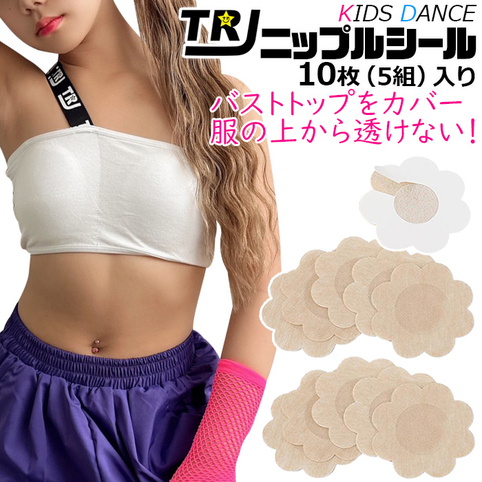 ニップルシール 10枚セット(5組) ニップレス シール 使い捨て フラワー 花 ベージュ キッズ 子供 女の子 ノーブラ バストトップ カバー シール 乳首シール