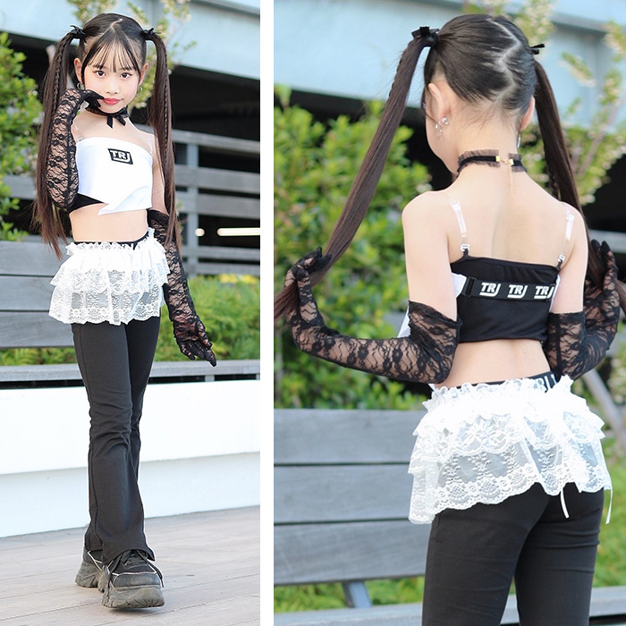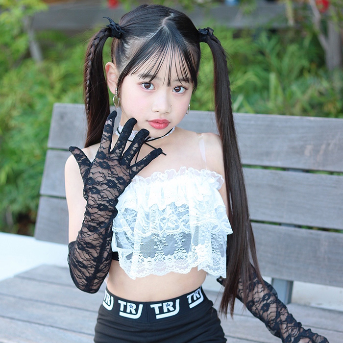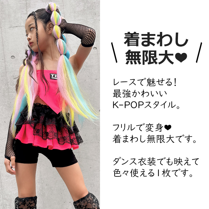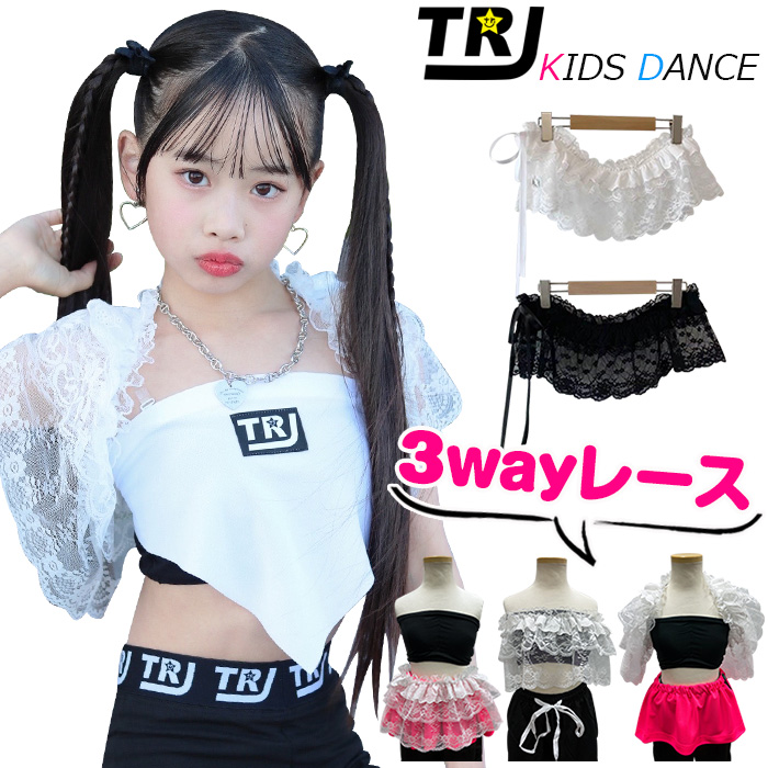 キッズダンス衣装 3WAY魔法のレース フリルトップス 3way チューブトップ ボレロ ケープ ミニスカート ショール フリーサイズ 女の子 子供服 キッズ