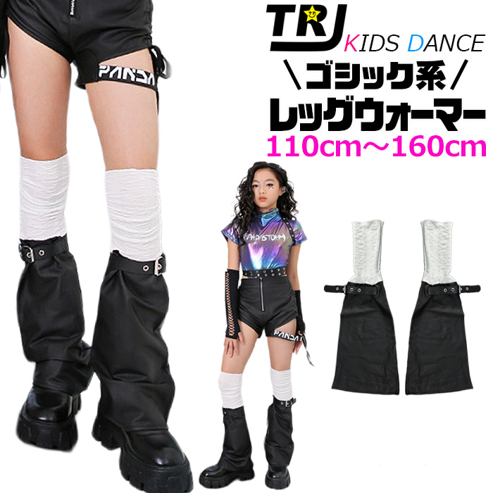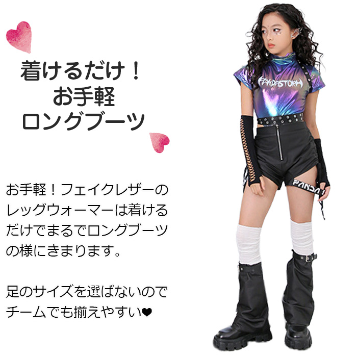 フェイクレザー レッグウォーマー ロングブーツスタイル 女の子 ガールズ キッズ 無地 ブラック 110cm〜160cm 子供〜大人まで ダンス衣装 ヒップホップ