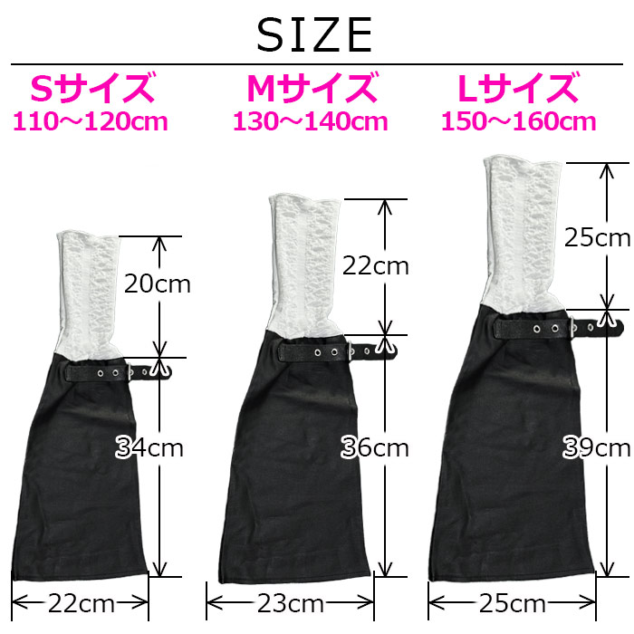 ・サイズ:S(110cm〜120cm)/M(130cm〜140cm)/L(150cm〜160cm)