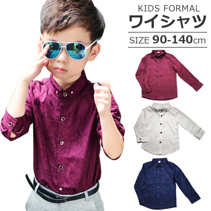 子供 キッズ ワイシャツ 長袖 男の子 フォーマル シャツ ジュニア おしゃれ 白 ホワイト 青 ネイビー 子供 長袖 ブラウス キッズダンス衣装