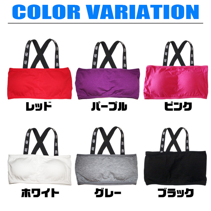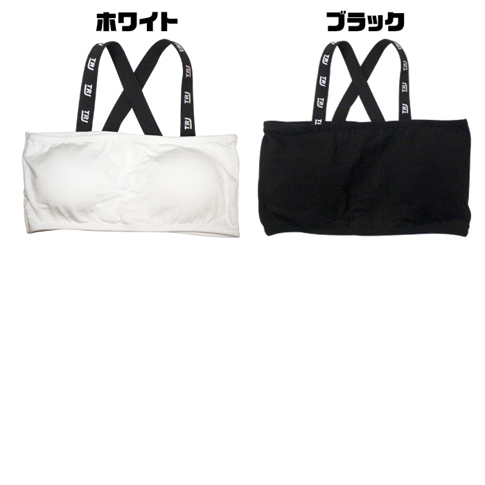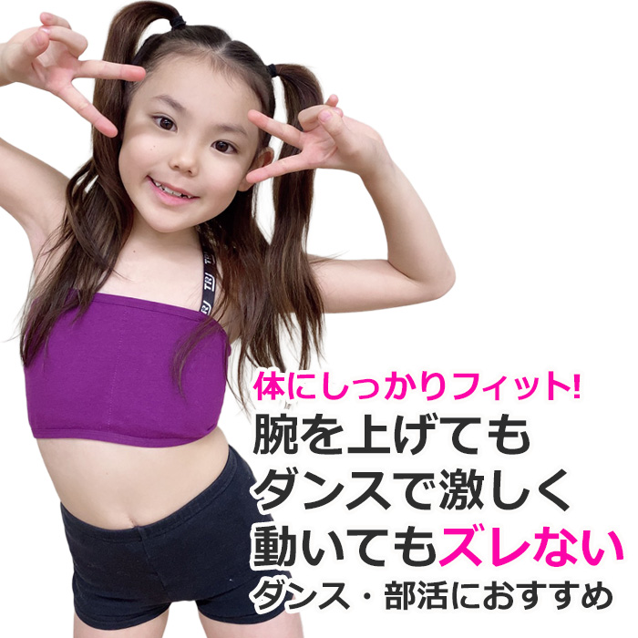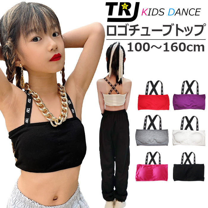 キッズダンス衣装 ロゴ クロス肩紐 チューブトップ スポーツブラ パット付き ブラトップ 女の子 子供服 キッズ 無地 ロゴテープ 肩ヒモ ヒップホップ