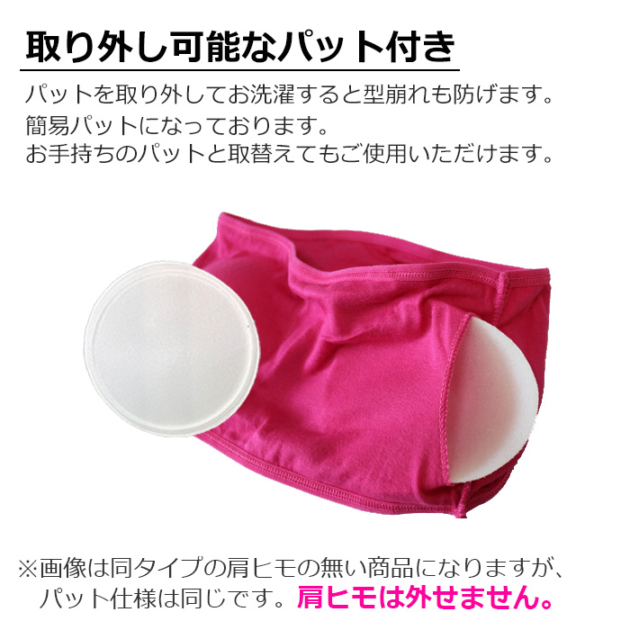 パッドが付いているのでブラジャーがまだ早いキッズのスポーツブラやブラトップに。パットは取り外しOK。