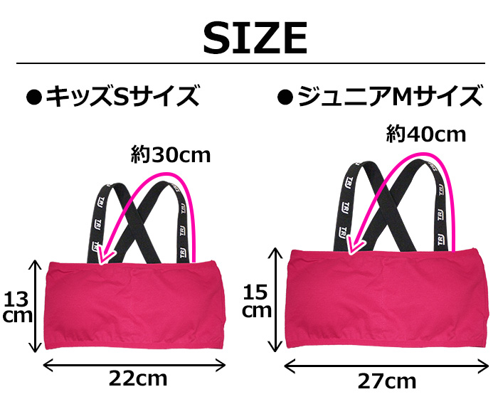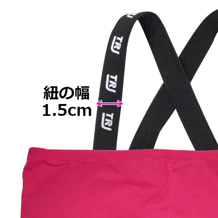 TRJロゴのクロス肩紐がかっこいい子供向けパット入りカラーチューブトップ。