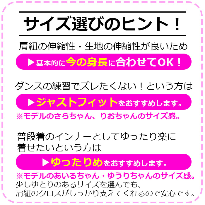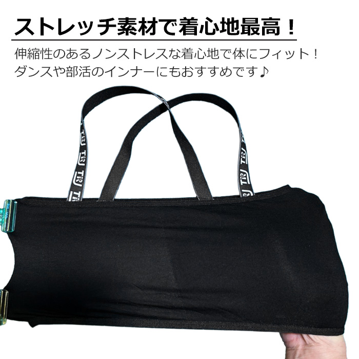 伸縮性のあるノンストレスな着心地で体にフィット。動きやすい&踊りやすいのでダンス衣装のインナーに。