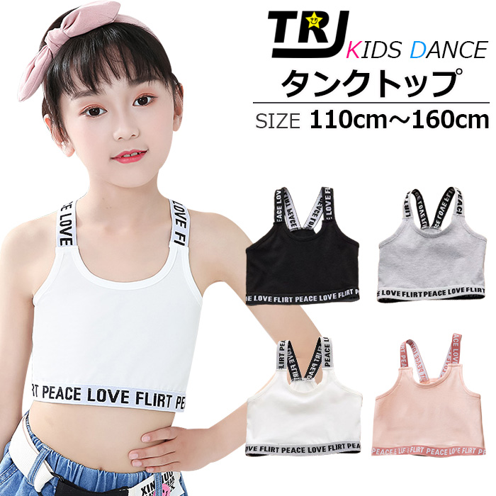 ショート丈 キッズ チューブトップ ハーフトップ スポーツブラ ノースリーブ ダンストップス ヒップホップ ロゴゴム ストレッチ素材
