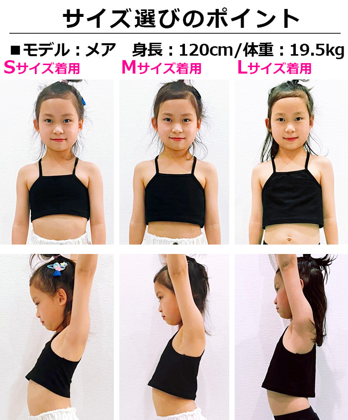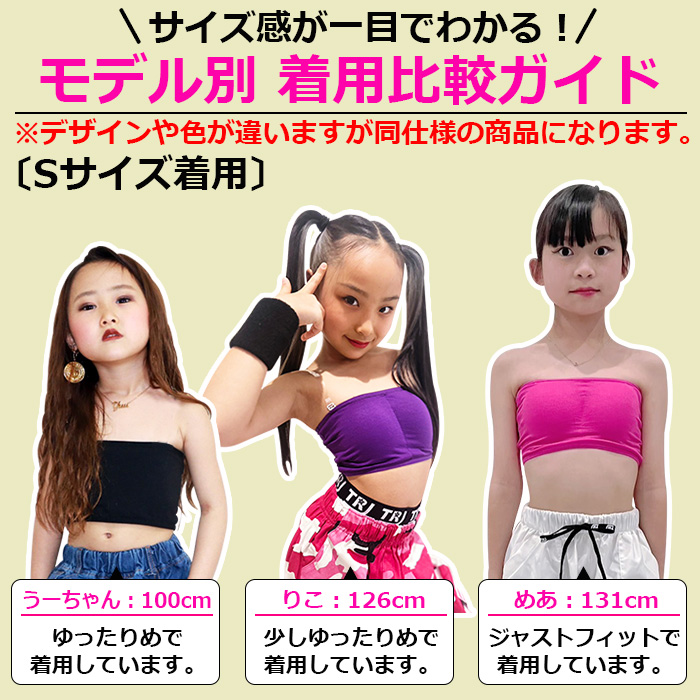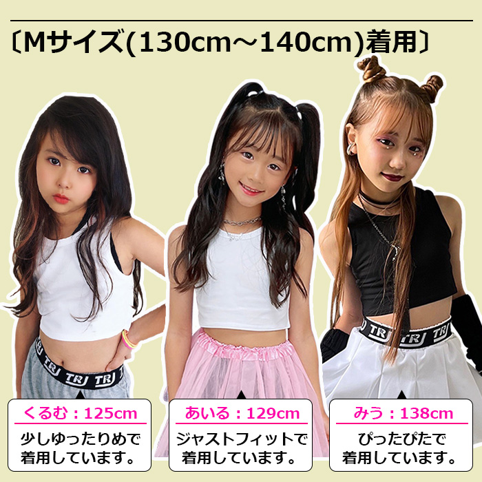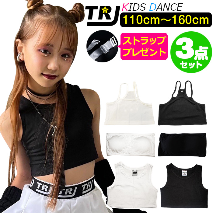 キッズダンス衣装 ダンスインナー 3点セット チューブトップ ショート丈 タンクトップ キャミソール 女の子 子供服 キッズ ブラック/ホワイト 110cm〜1