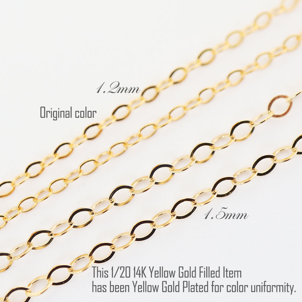 14KGF 真鍮製 平小豆 フラット あずきチェーン 1.5mm 切り売り 20cm アメリカ直輸入