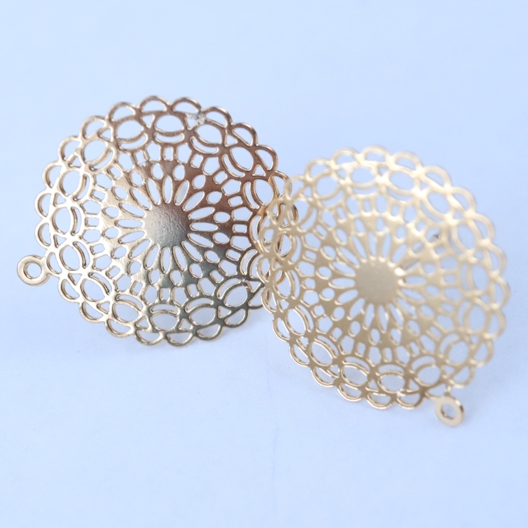 『在庫処分価格』金アレ対応 真鍮製 18KGP 透かし ピアスパーツ A 1ペア