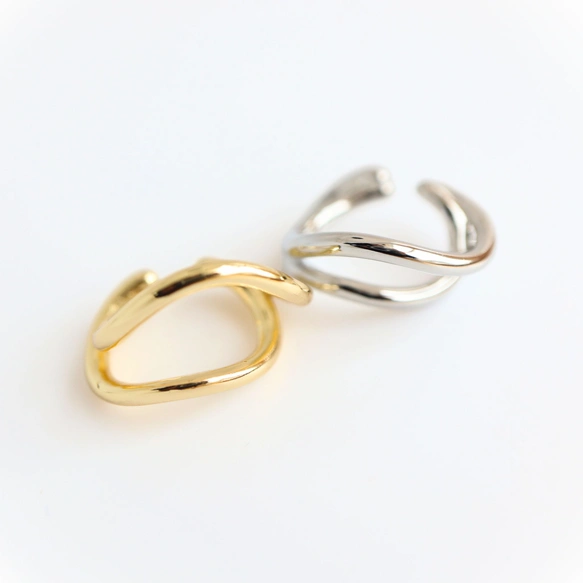金アレ対応 真鍮製 ひねり イヤーカフ 2個