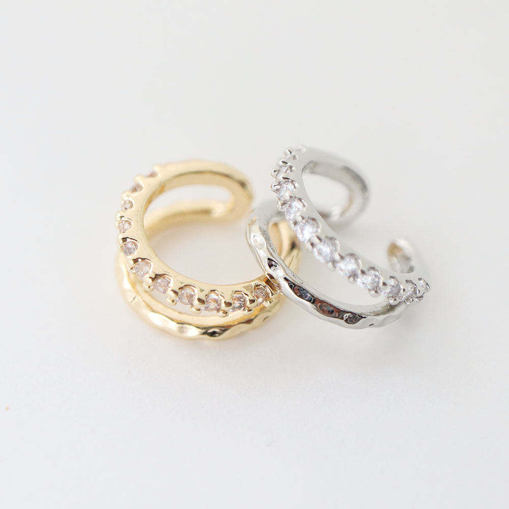 金アレ対応 真鍮製 2連 CZ付 イヤーカフ 2個