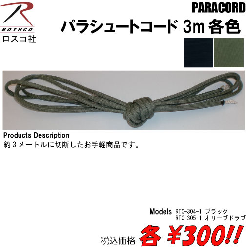ミリタリー サバゲー パラコード パラシュートコード3m 各色