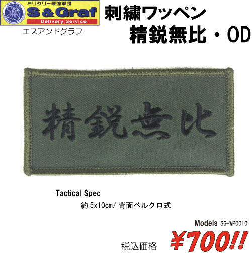 ミリタリー サバゲー コスプレ ワッペン パッチ 刺繍ワッペン 精鋭無比・OD