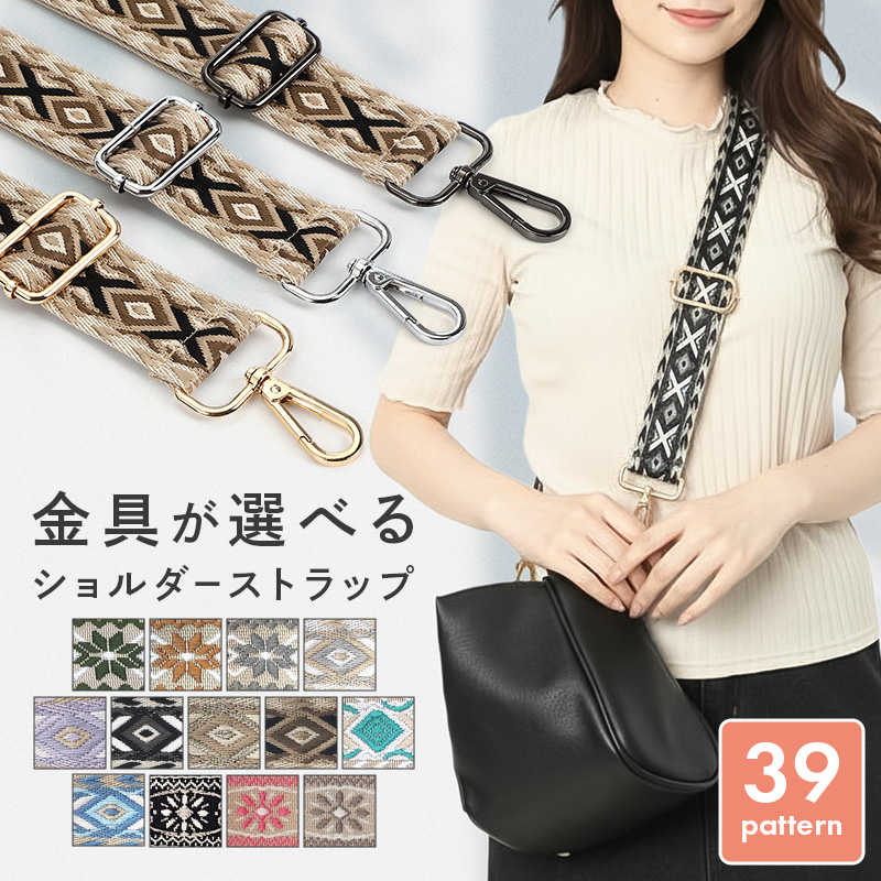 ショルダーベルト 柄 ショルダーストラップ 模様 単品 太め 肩ひも バッグ バッグストラップ 幅広 ショルダー紐 スマホストラップ のみ 金具 シルバー ブラック