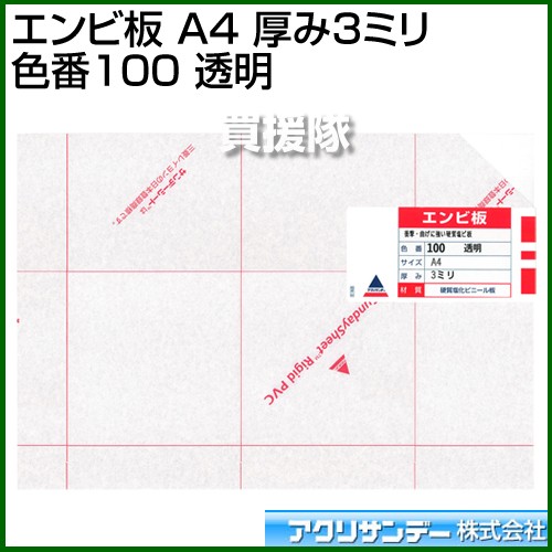 品名:エンビ板 A4 厚み3ミリ 色番100 透明