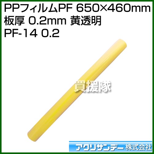 アクリサンデー PPフィルムPF 650mm×460mm 板厚 0.2mm 黄透明 PF-14 0.2 キイロ カラー:黄透明 サイズ:650mm×460mm