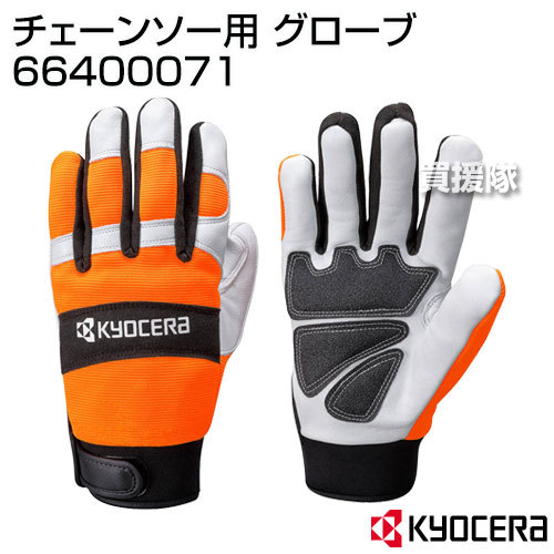 チェンソー使用時の防護手袋、刃に近い左手側に防護繊維を使用しています