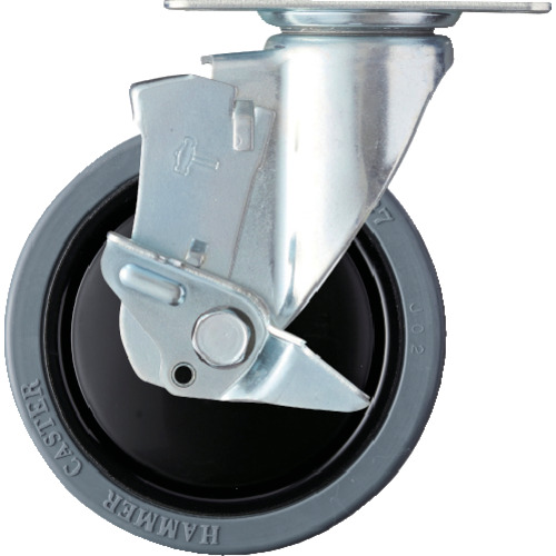 品名:ハンマー 静音旋回式ゴム車輪(ナイロンホイール・ラジアルボールベアリング)125mm ストッパー付