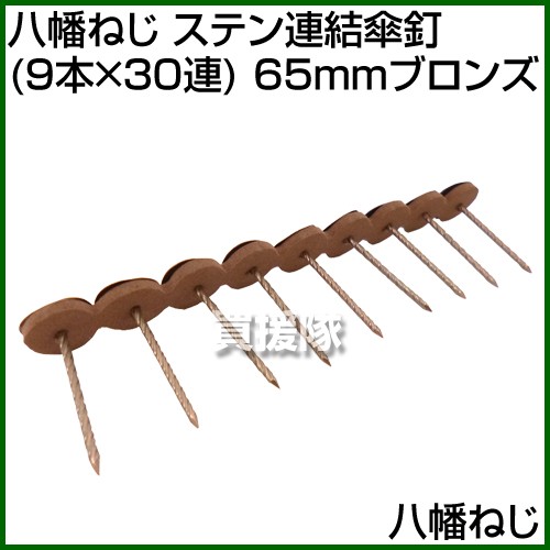 (P5倍)(クーポン8枚で合計10000円OFF)八幡ねじ ステン連結傘釘 9本×30連 65mmブロンズ サイズ:65mm