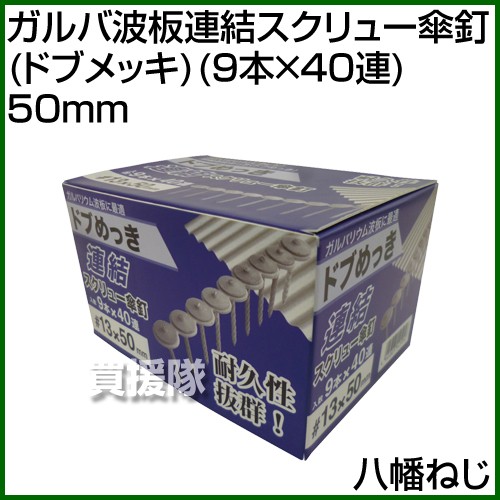 (P5倍)(クーポン8枚で合計10000円OFF)八幡ねじ ガルバ波板連結スクリュー傘釘 ドブメッキ 9本×40連 50mm サイズ:50mm