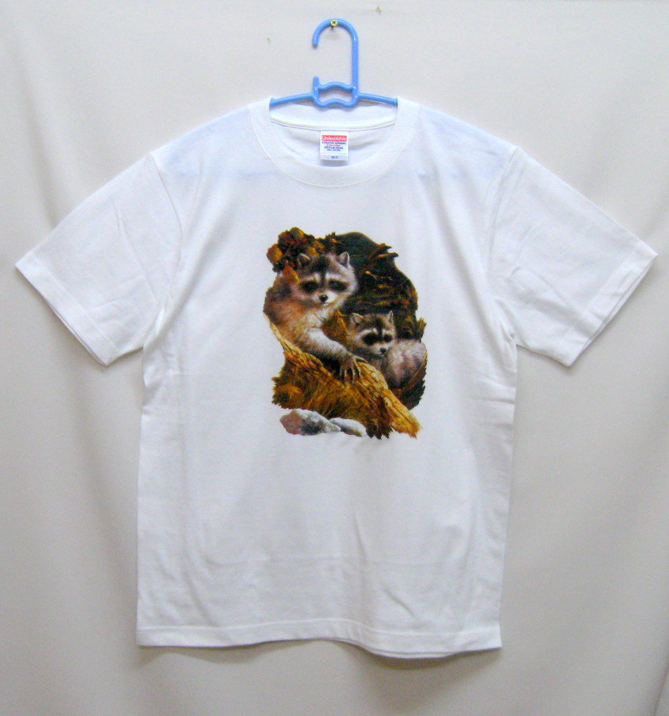 アライグマ ラクーン 野生動物 tシャツ 半袖 カットソー 丸首型 クルーネック 綿100% コットン トップス 服 レディース メンズ シンプル かわいい おしゃれ イベント お揃い 動物 オーナーグッズ オフ会