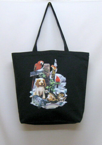 動物柄がプリントされたトートバッグです。厚手の生地で丈夫です。A4対応で雑誌や書類入れに便利です。サブバッグとしても大活躍。ご近所の買い物や散歩など、いろいろ使い勝手の良いトートバックです。