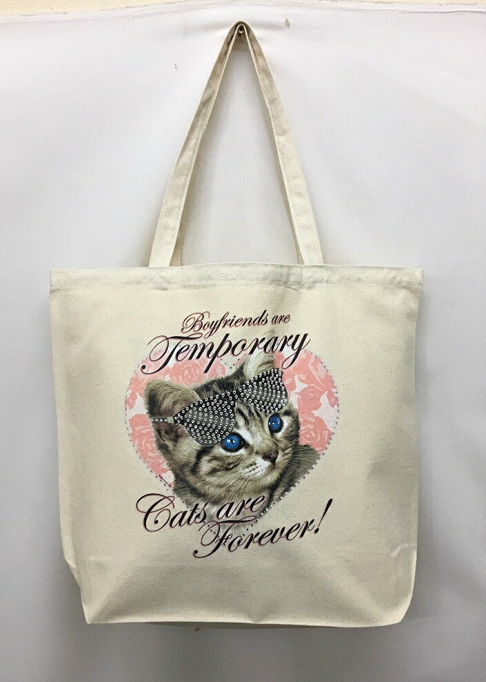 猫柄プリント一覧はこちらから 動物柄がプリントされたトートバッグです。厚手の生地で丈夫です。A4対応で雑誌や書類入れに便利です。サブバッグとしても大活躍。ご近所の買い物や散歩など、いろいろ使い勝手の良いトートバックです。