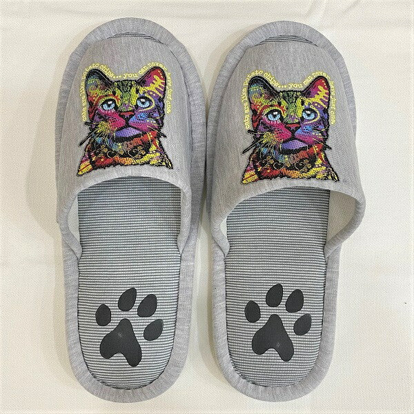 *洗濯機で丸洗いできる、めずらしい、キャット柄スリッパです。(ネットにいれて洗ってください。