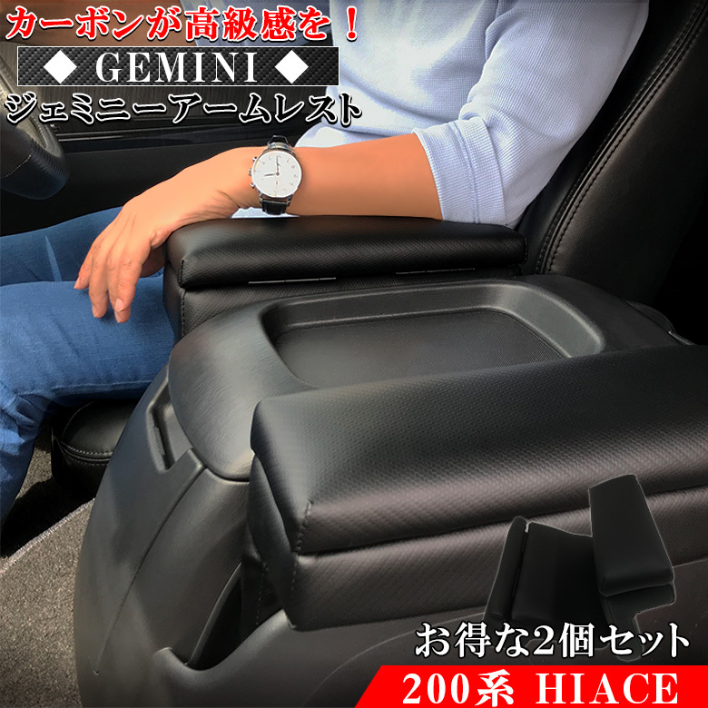 ハイエース 200系 アームレスト ジェミニーアームレスト カーボン調 2個セット HIACE レジアスエース ハイエースアームレスト カスタム 車