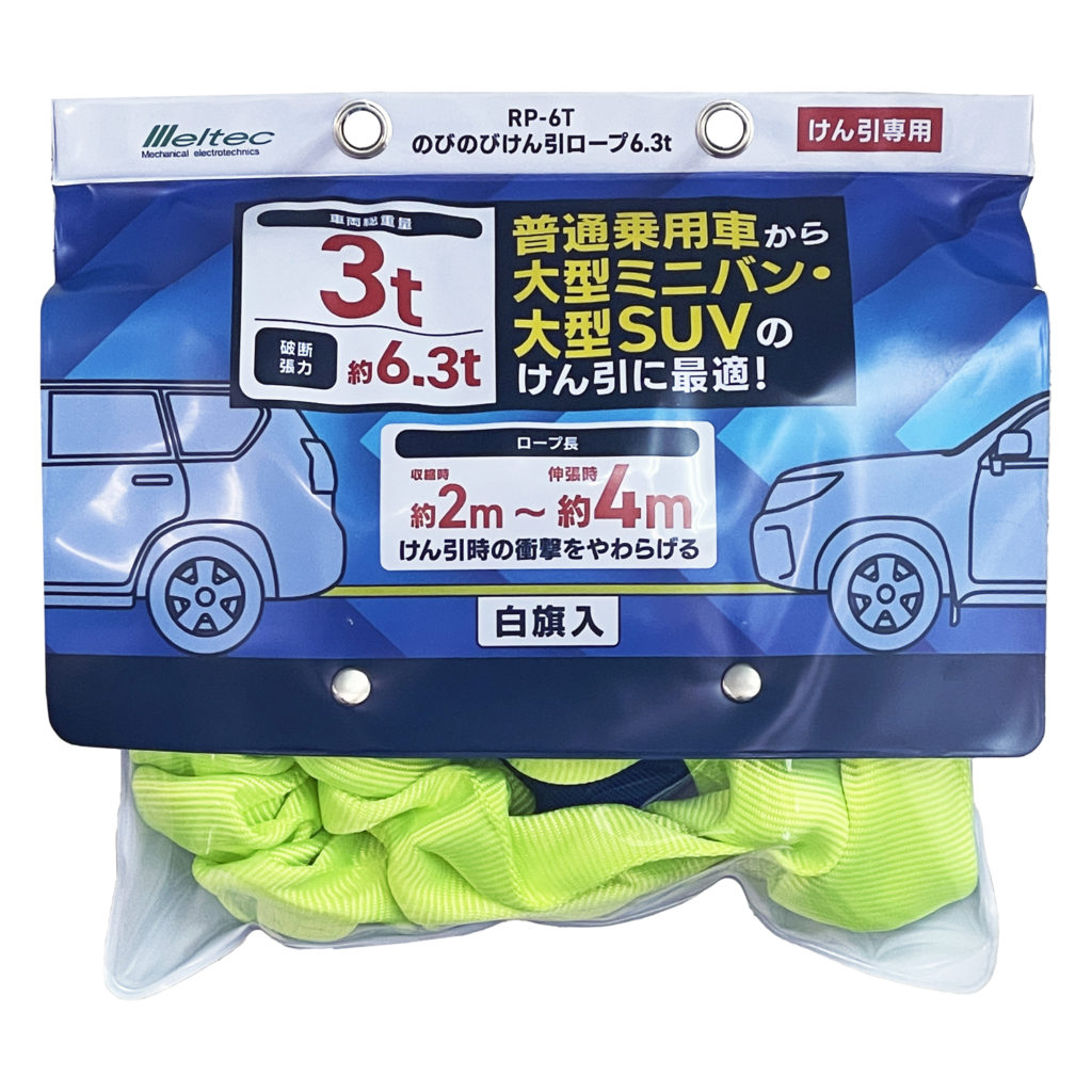 大自工業 RP-6T けん引ロープ 6.3t | 軽自動車 ミニバン 小型乗用車 普通乗用車 白旗 2m 4m けん引 車用牽引ロープ 車用けん引ロープ