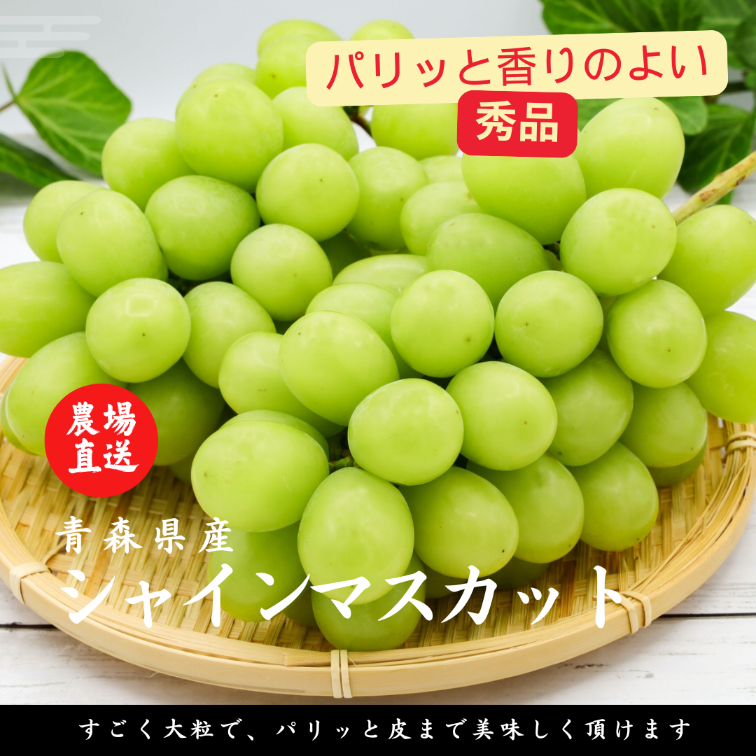 青森県弘前市にて、昼夜の寒暖差を利用して、最高の食味と甘さを持つ大粒のシャインマスカットを生産しております。丁寧に、丁寧に育てられたシャインマスカットはすごく大粒で、パリッと皮まで美味しく頂けます。開梱した際に部屋中にマスカット香が広がります。そして、一粒食べれば、薄皮で食べやすく、その濃厚なシャインマスカットの味に虜になるはずです。