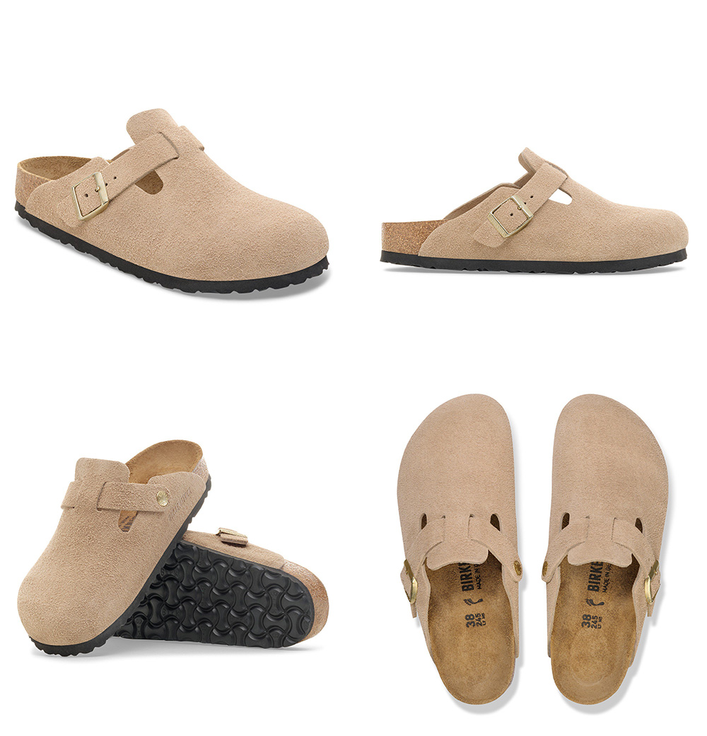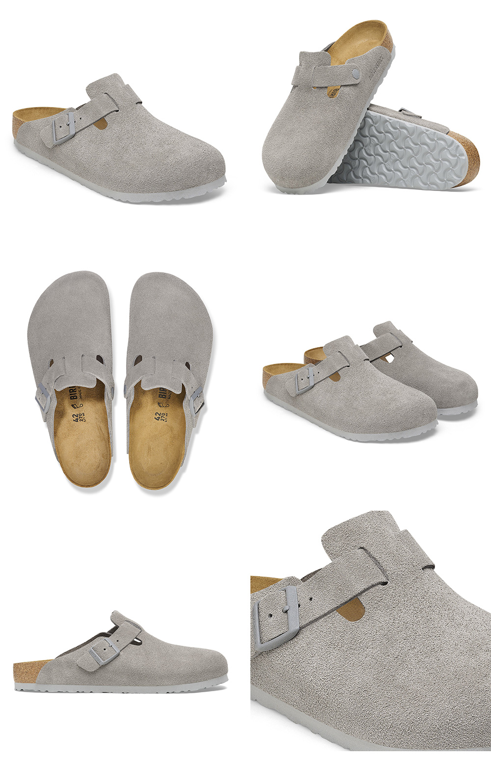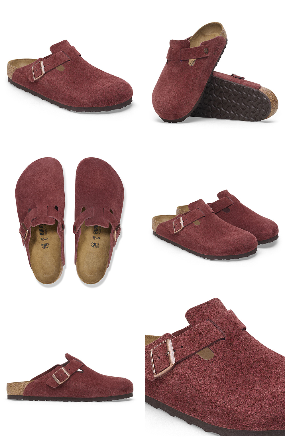 BIRKENSTOCKお馴染みの、洗練されたフォームが魅力的なBostonモデル。このモデルには柔らかく肌触りの良いベロアレザーを使用しています。ベルトを調節し、自由にフィット感を調整できます。
