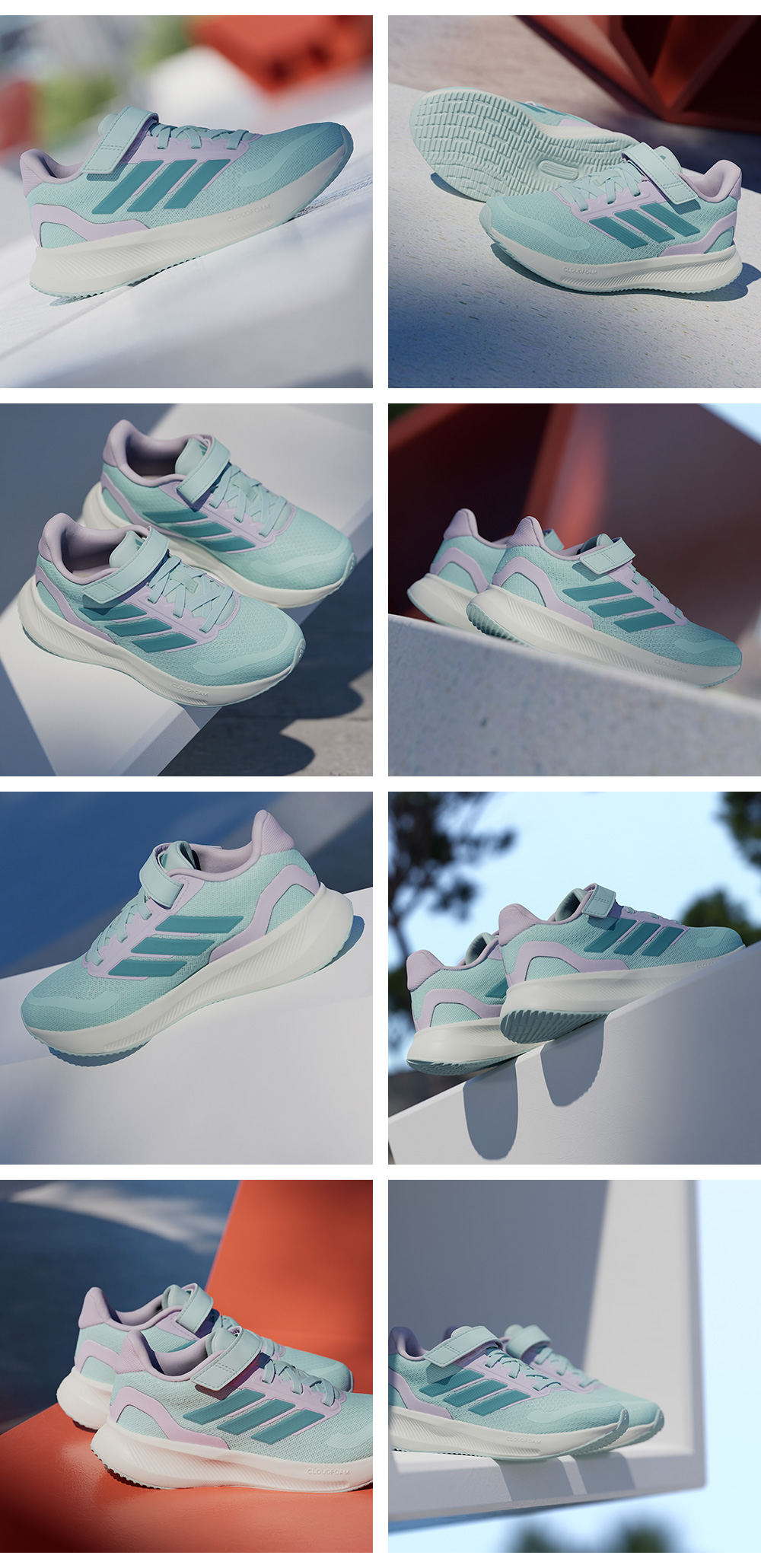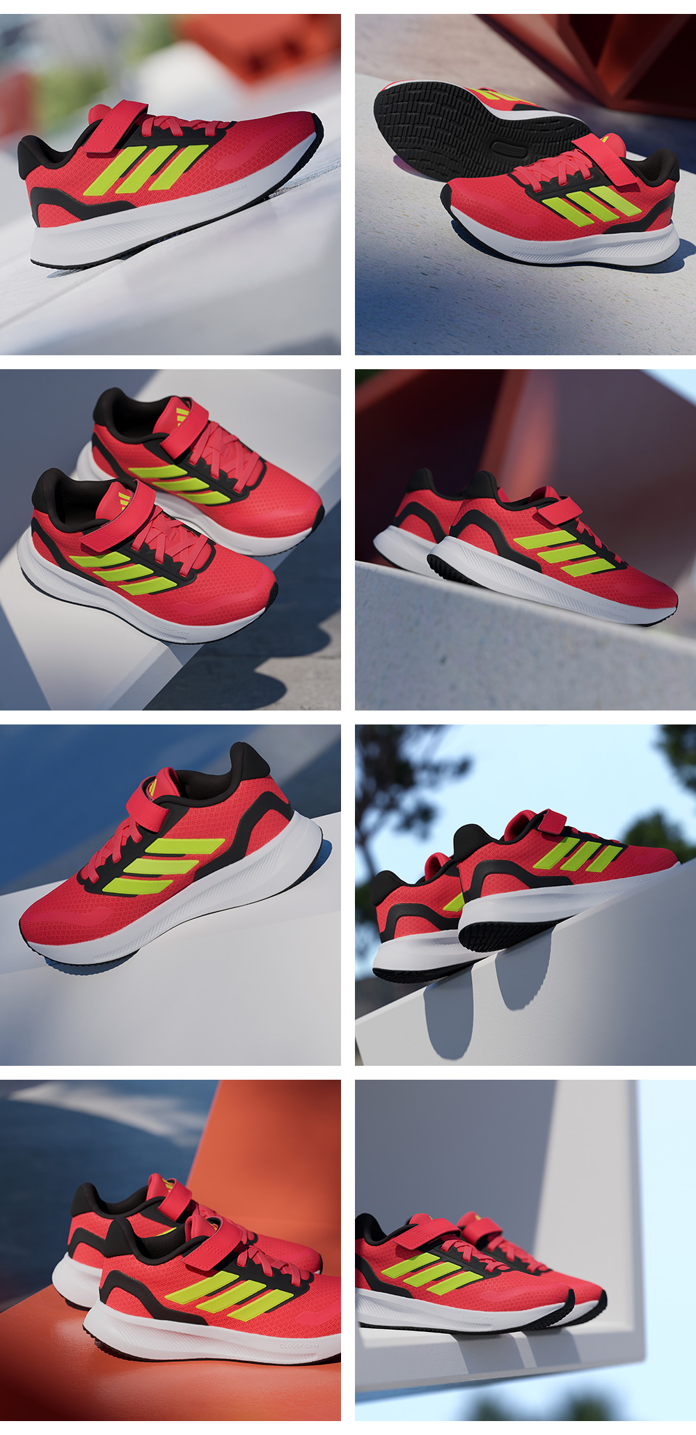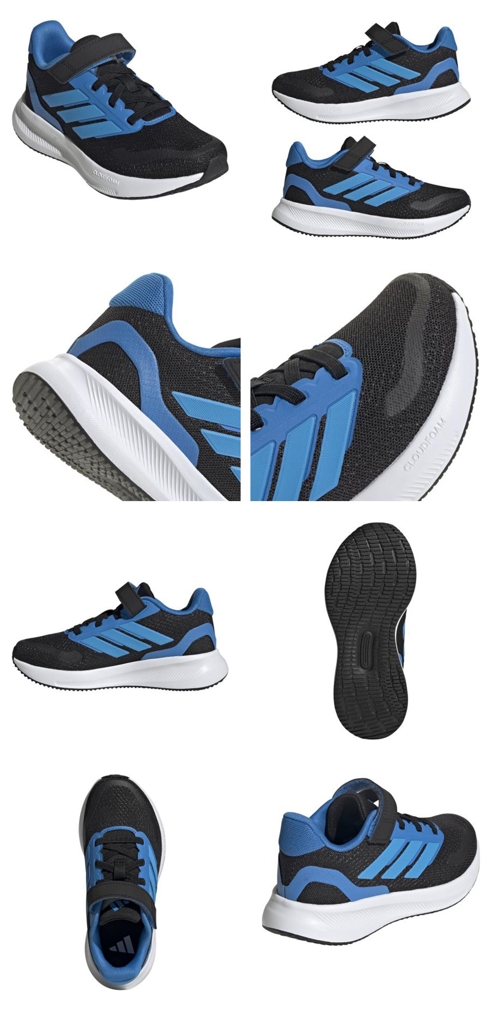 スポーティーで弾むソールが特徴の、小さな俊足ランナーを支えるキッズ用スニーカー。軽量アッパーにソフトな感触のライニング、一日中優しく足をサポートしてくれるCloudfoam クッショニングを合わせている。伸縮性のあるシューレースと面ファスナー式トップストラップを組み合わせた作りだから、子どもでも一瞬で履くことができる。