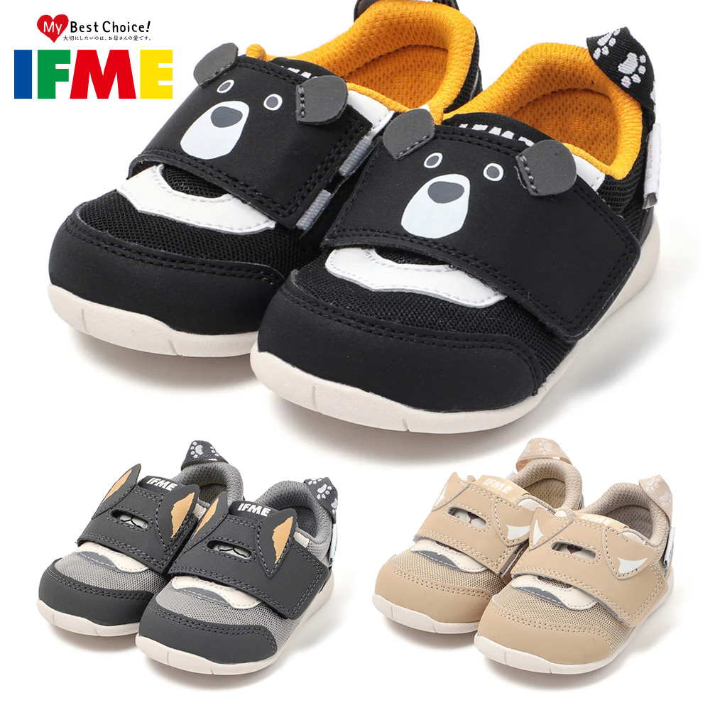 イフミー スニーカー キッズ IFME PARK ワンベルトアニマルスニーカー 20-5801 2025秋冬 ベビーシューズ 柴犬 クマ