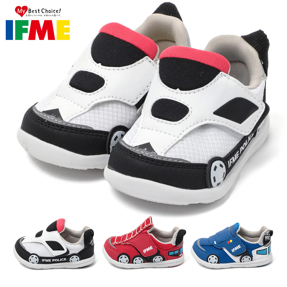 IFMEの乗り物シリーズにパトカー・パッカー車・ハシゴ消防車がモチーフのワンベルトタイプスニーカー新登場。