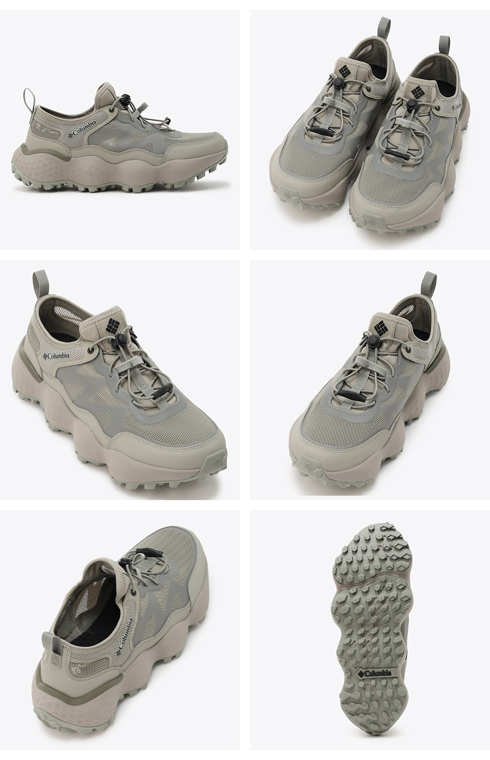 ・アッパー:水を含みにくいメッシュ素材に、半透明なTPUパーツを組み合わせ、速乾性と足元の安定感を確保。