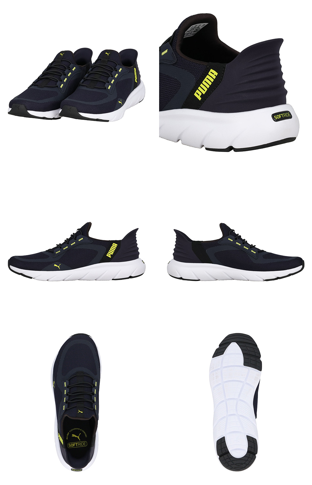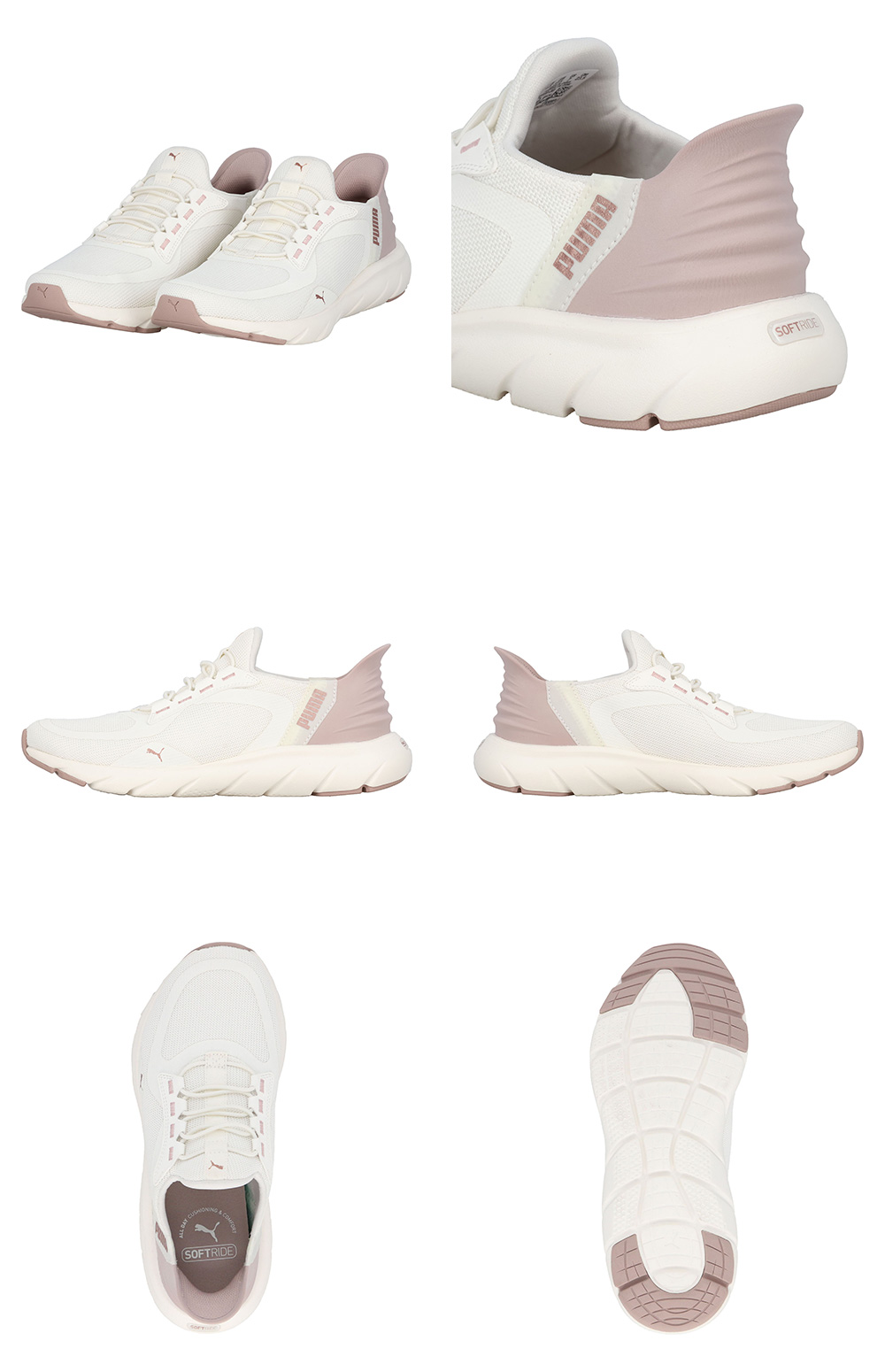 シュータン一体型のスリッポン構造の履き口、かかと部分が柔らかく、立ったままでも簡単に足入れが可能です。アッパーにメッシュ素材を採用し、軽量で通気性がよく柔らかい履き心地のシューズ。SOFTRIDEミッドソールは、究極のクッション性を提供し一日中快適な履き心地が持続します。ワイズも通常よりワイドになっており、横幅も気にせず履くことができます。ランニングだけでなく、ウォーキングや外出時にもおすすめの一足。