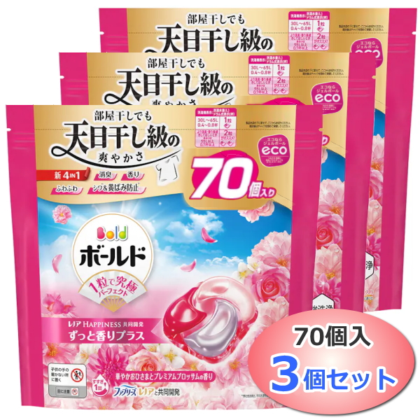70個入×3個セット ボールド ジェルボール 4D 華やかおひさまとプレミアムブロッサムの香り 詰め替え 大容量 210個 洗濯洗剤 柔軟剤入り 強洗浄 超特大